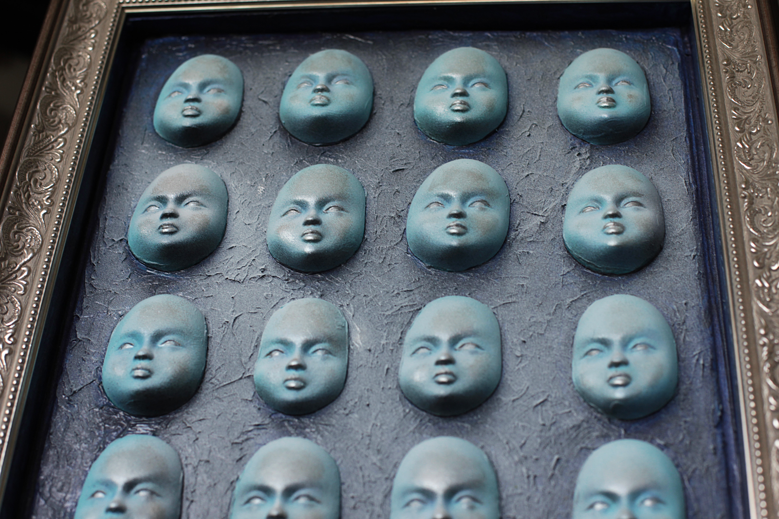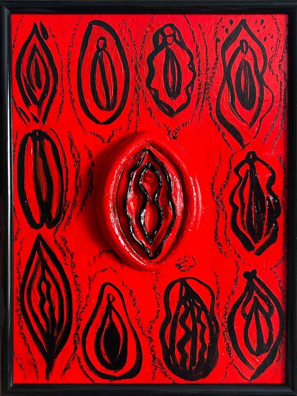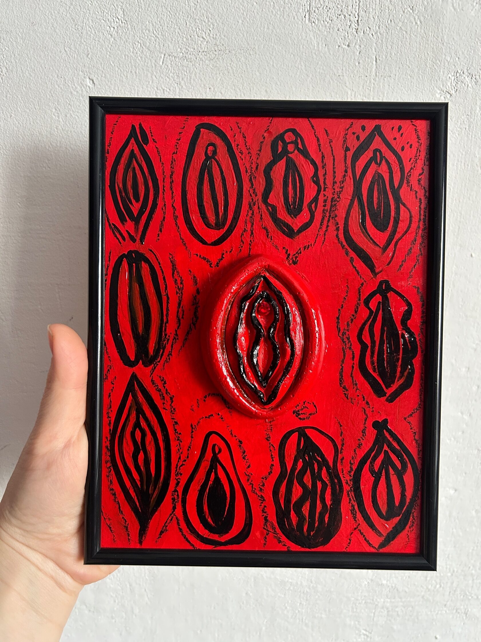 картон 20х15 см, гипс, акрил, мел.карандаш, работа оформлена в дерев. рамку